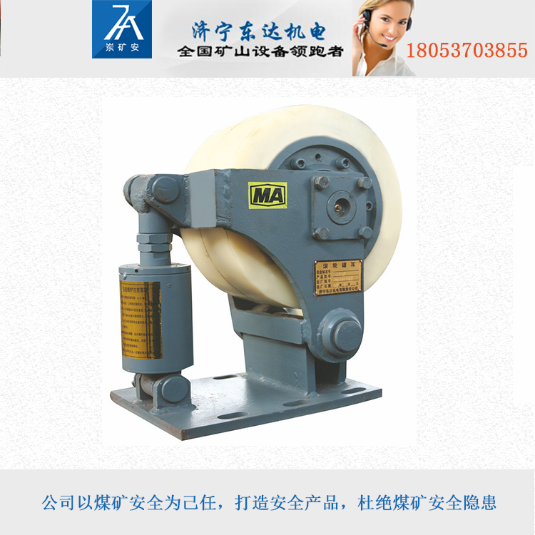本产品采用先进的密封技术,适应淋水、煤尘等恶劣环境。轮头安装采用三锁紧结构,彻底避免掉轮头事故的发生。滚轮采用四氢呋喃-环氧丙烷共聚醚型聚氨酯浇注,具有高弹性、耐撕裂、抗水性、抗油性的优点。滚轮磨损补偿调节采用左、右旋螺杆,调节迅速便捷。机座、摆架采用优质钢板焊接成型,体积小、重量轻,安装轻便。