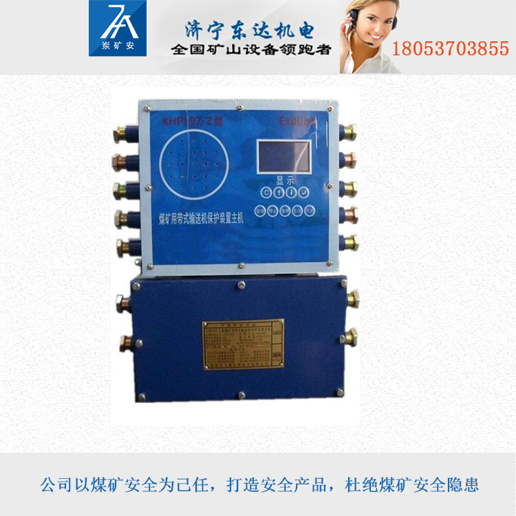 矿井皮带机综合保护保护装置KHP主机厂家直销KHP197-Z煤矿用带式输送机保护装置智能主机(以下简称主机)是根据国家矿安全规程和关于完善井下皮带运输机保护的有关文件的要求而进行设计的,在进行了大量的井下实地调查及试验后,对现有的皮带机综合保护器进行了优化和改进;同时听取了大量的用户反馈意见,使本装置的先进性、可靠性、操作方便性、节能等与同类产品相比较都有了较大程度的提高。本装置的特点为适用于具有爆炸性气体和煤尘的矿井中,用来对带式输送机进行综合保护及控制。