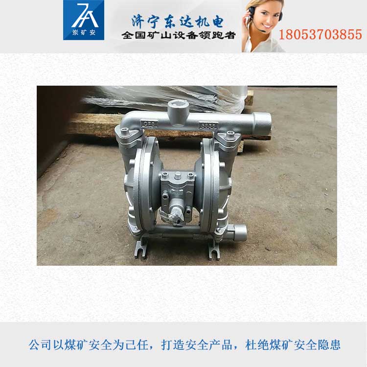 QBY气动隔膜泵是一种新型输送机械,是目前国内最新颖的一种泵类。采用压缩空气为动力源,对于各种腐蚀性液体,带颗粒的液体,高粘度、易挥发、易燃、剧毒的液体,均能予以抽光吸尽。其性能参数与联邦德国的 WLLDENPVMPS、美国的MARIOWPUMPS相近.本厂目前已形成系列化生产,共有八种规格直径:¢10mm(3/8")、¢15mm(1/2")、¢25mm(1")、¢40mm(11/2")、¢50mm(2")、¢65mm(21/2")、¢80mm(3")、¢100mm(4")。四种材质、铝合金、铸铁、工程塑料、不锈钢。根据不同液体介质分别采用丁晴橡胶、氯丁橡胶、氟橡胶、聚四***。以满足不同用户的需要。自1986年投产以来,已被国内一千多家**、化工、电子、陶纺织系统单位采用,安置在种特殊场合,用来抽送各种常规泵不能抽吸的介质,均取的了满意的效果。