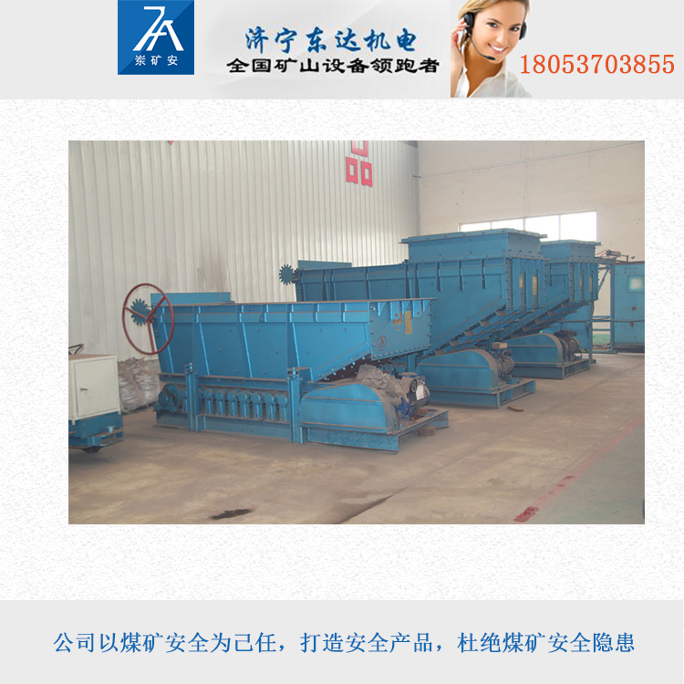 东达GLW590/18.5/S往复式给煤机用于煤矿、选煤厂,将原煤或精煤从煤仓、储煤漏斗中均匀地卸出,转载到运输设备上,或直接卸落到筛分设备或其它选煤设备上。