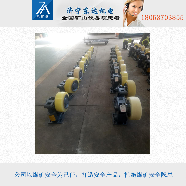 L/LS35滚轮罐耳安装在提升容器上(箕斗、罐笼、重锤)。滚轮直接与钢罐道接触,承受提升容器在运行中所产生的水平力。通过杠杆传递到减震筒上,同时起到导向、缓冲与稳定作用。罐道与罐耳由滑动摩擦变为滚动摩擦,因此减少了动力消耗,降低了噪音,罐道和罐耳的磨损也大大降低。从而,滚轮罐耳提高了罐道和罐耳的使用寿命。