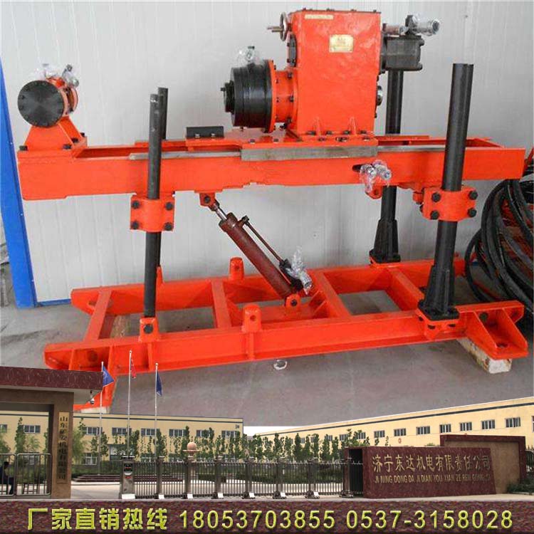 该钻机采用液压传动机构,具有钻进能力大、速度快、操作简单、工作稳定可靠、移动安装方便等特点。泵站、动力头、机架、立柱框架、操作台。泵站、操作台和主机分离、远离钻孔操作台钻机,防止喷孔伤人,安全系数高,各个部件采用快速装卸结构设计。可实现快速解体和组装,减少辅助作业时间