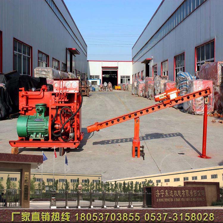 该钻机采用液压传动机构,具有钻进能力大、速度快、操作简单、工作稳定可靠、移动安装方便等特点。泵站、动力头、机架、立柱框架、操作台。泵站、操作台和主机分离、远离钻孔操作台钻机,防止喷孔伤人,安全系数高,各个部件采用快速装卸结构设计。可实现快速解体和组装,减少辅助作业时间