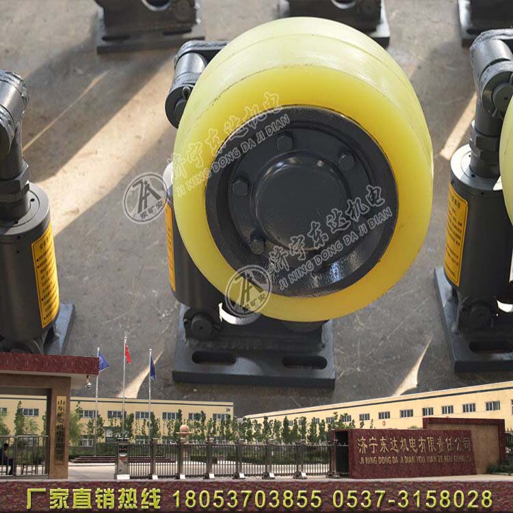 滚轮罐耳是煤矿主井、副井罐笼上下运行的一个减震安全辅助的一个产品,一个罐笼4个角,一个角一组,一组配两个单轮和一个双轮,环抱立柱,本产品关乎着安全生产,用途单一,选择性一定要以安全为本,质量第一,我们公司的滚轮用的是先进的三锁紧结构,彻底避免吊轮头事故的发生,滚轮采用四氢呋喃-环氧丙烷共聚醚型聚氨酯浇注,具有高弹性、耐撕裂、抗水性、抗油性的优点。滚轮磨损补偿调节采用左、右旋螺杆,调节迅速便捷。机座、摆架采用优质钢板焊接成型,体积小、重量轻,安装轻便。